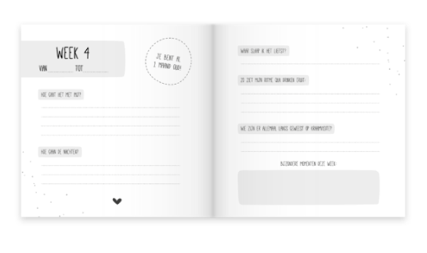 Jouw kindje maakt heel veel ontwikkelingen, veel van deze bijzondere momenten vergeet je als ze groter worden. Met dit invulboek vind je invulbladen om alle eerste mijlpalen en gebeurtenissen vast te leggen. Van de zwangerschap, de eerste weken en maanden tot de eerste verjaardag. Je vindt er vragen die je kunt invullen maar ook pagina's waar je foto's kan plakken.