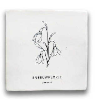 Dit tegeltje is bedrukt met de geboortebloem van de maand januari: Sneeuwklokje